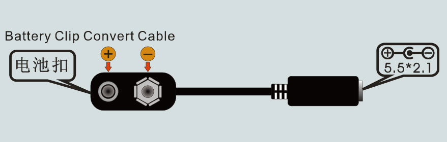 5.5/2.1的DC电源插头转换为9V电池扣